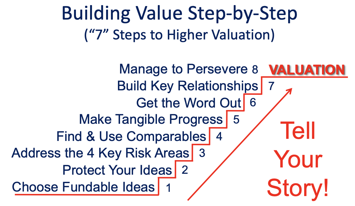 Overall, make sure you’re having fun as well! Starting a medical device company is a great adventure, but if it’s not the right adventure for you, then do something else. If this is your calling, however, then go for it! You’ll find it grueling, exhilarating, frustrating and rewarding. And the world will be better for your having done it! Creating a fundable company is a combination of the right project, team, business model and market. Remember to keep all these aspects in sight as you start or continue your journey. And follow the 7 steps to increase your valuation – it’s a critical part of the process!